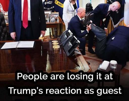 People are losing it at Trump’s reaction as guest collapses in the Oval Office during press conference